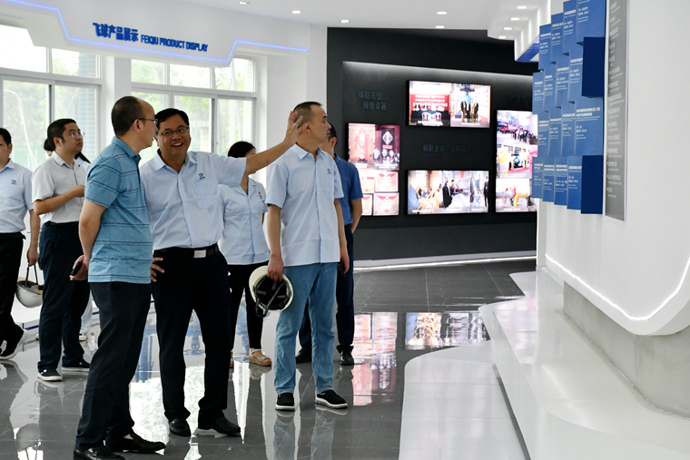 本网讯(邓红梅报道)8月3日上午,自贡市高新区党工委副书记李善鸿协同党群事情部副部长兰曦、经济运行局局长廖晟、经济运行局副局长黄春瑾一行来到位于板仓工业园区内的四川飞球(集团)有限责任公司(以下简称四川飞球),开展自贡市高新区工业经济专题调研。公司总经理樊平、常务副总经理曹国强、副总经理姚兵等公司领导全程陪同考察并做事情汇报。