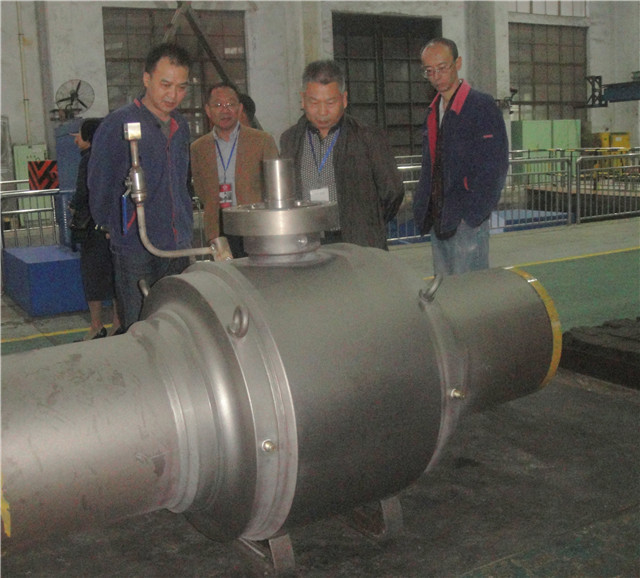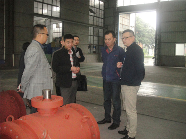 来宾深入到金加工车间现场旅行加工阀门零件的生产工艺流程,认真了解设备的加工能力。在热处理工段,姚总向来宾介绍了在中国阀门行业,飞球公司坚持质量治理和质保体系运行,注重阀门品牌,对阀门零件进行热处理,以确保其品质。在总装车间来宾旅行了3200吨试压机,咨询了公司如何避免阀门泄漏等方面的情况。钟总和姚总、江总等领导划分比照阀门零件和制品,详尽地回覆了来宾体贴的有关技术问题,以及公司在确保产品质量方面接纳的具体步伐。在总装车间来宾饶有兴趣的寓目了小口径阀门的装配历程。在球阀样机面前,姚总介绍道:2002年飞球公司率 先研制开发出了中国首台满足西气东输主管线要求的40吋、600磅级,全焊式锻钢气液联动管线球阀样机,经海内专家组鉴定确认,该产品各项性能指标均抵达了世界同类产品水平,被科技部列入了国家A类重点新产口,填补了海内空白,被业内专家评价为“中国阀门制造史上的里程碑”。公司曾被国家“西气东输”领导小组授予“西气东输突出孝敬奖”称呼,这是中国阀门行业获得的唯 一奖项。