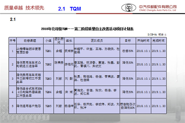 ´ÓTQMµÄÁ¬ÐøÍ»ÆÆ¸ÄÉÆ·½Ã棬ͨ¹ýÊ÷Á¢¡°ÖÊÁ¿¾ÍÊÇÉúÃü¡¢ÉúÃüÖ»ÓÐÒ»´Î¡±µÄȫԱÖÊÁ¿Òâʶ£¬QSBÖÊÁ¿Î¬³ÖÌåϵµÄÂ䵨£¬ÖÊÁ¿°ü¹Ü²¿Í³¼Æ·´Ó¦£¬2018ÄêµÄÖ÷¹ËËß¿à½Ï2017Äê¼õÉÙ38Æð£¬Ï½µ48%¡£TQMµÚÒ»½×¶ÎÁ¬Ðø¸ïУ¬3ÔÂ1ÈÕÆô¶¯2018ÄêµÚÒ»´ÎTQMÔ˶¯£¬ÔÚ9ÔÂ30ÈÕ½øÐÐÁ˸÷С×éTQMÍŶӾÑé·ÖÏí£¬Í¬Ê±ÒÔÌáÉý²úƷʵÎïÖÊÁ¿ÎªÖ÷£¬¼õÉÙ¿Í»§Ë߿࣬¼õÉÙ¹«Ë¾ÄÚÍⲿËðʧ±¾Ç®µÄµÚ¶þ½×¶ÎTQMÆô¶¯¡£¶ÔÖØµãÒÉÄÑ·ÏÆ·Ô´£¬½¨Á¢¹«Ë¾¼¶µÄ TQM¸ÄÉÆÐ¡×飬ÉϰëÄ꽨Á¢ÁË 4¸ö TQM½µµÍÄڷϵĸÄÉÆÍŶӡ¢Ï°ëÄêÆô¶¯Á˽µµÍ 3¸ö TQM½µ·Ï¸ÄÉÆÍŶӣ¬ÔËÓÃÆß²½ÊÂÇé·¨µÄÔÀí£¬ÏµÍ³µØ¿ªÕ¹½µ·ÏÊÂÇé¡£