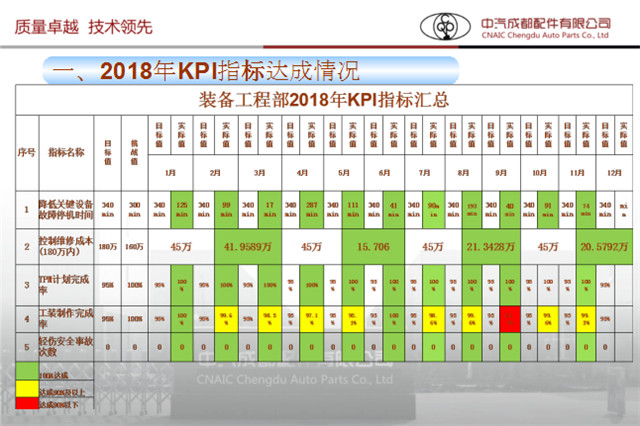 ´ÓÉ豸ÖÎÀí·½Ãæ£¬×°±¸¹¤³Ì²¿2018ÄêÈ«ÄêÒªº¦É豸ƽ¾ù¹ÊÕÏÍ£»úʱ¼ä½Ï2016Äê/2017ÄêÓÐÒ»¶¨¸ÄÉÆ(385min--158min--117min)£¬ÆäÖÐ4Ô·ݹÊÕÏÍ£»úʱ¼ä×î ³¤£¬Ö÷ÒªÔÒòΪÉÌÓóµÍ¹ÂÖÖá³µ¼äºÃ¿Ë˹¼Ó¹¤ÖÐÐÄάÐÞÄѶȴóÇÒʱ¼ä³¤Ôì³É£¬µçÆ÷άÐÞÕûÌåʱ¼äÕý³££»12Ô·ÝËæ×ÅÉ豸ʹÓÃÄêÏÞ³¬5~10Äê¼°ÒÔÉϵÄÉ豸£¬µçÆ÷¹ÊÕÏÂÊÃ÷ÏÔÉÏÉýÇÒÓÐ×Ų»È·¶¨ÐÔ£¬ÈçºÎÓÐЧ½â¾ö½«³ÉΪ2019ÄêµÄÖØÒª¿ÎÌ⣬ͬʱ¸ß¼ÛÖµ³¤ÖÜÆÚ±¸¼þµÄÅжϹºÖÃÒÔ¼°ÀÏϵͳµÄάÐÞ³ÉΪÄÑÌâ¡£KPIÖ¸±êÍê³ÉÕûÌåЧ¹ûºÜºÃ£¬¿ÉÊǹ¤×°¼Æ»®Íê³ÉÂʱ£´æÎÊÌ⣬9Ô·ÝÄ¿±êδ¸æ¿¢£¬Ö÷ÒªÔÒòÊÇÁÙʱÐԼƻ®Ì«¶à¡£