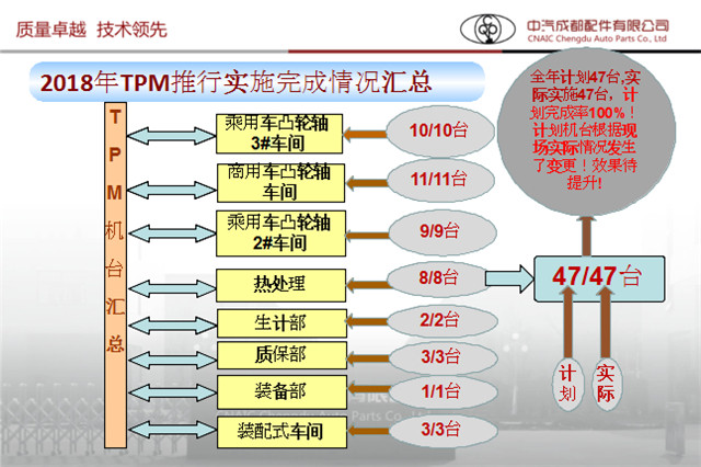 Ê×ÏÈÓÉÖܲ¿³¤¶Ô2018ÄêTPMÍÆÐÐÇé¿ö½øÐнéÉÜ£¬¶Ô2018Ä꿪չTPMÖÎÀíÒÔÀ´µÄÊÂÇé¾Ñé×ܽᡢÆÊÎöȱ·¦£¬¶ÔÀ´ÄêTPMÖÎÀíÊÂÇé´òϼáʵ»ù´¡¡£È«Äê¼Æ»®47̨£¬Êµ¼Êʵʩ47̨£¬Íê³ÉÂÊ100%¡£TPMÓöÈ69846Ôª£¬½Ï2017Äê´ó·ùϽµ¡£Òªº¦É豸ͣ»úʱ¼ä½Ï2017ÄêϽµ25%£¬Ô±¹¤¶ÔÉ豸ÈÏʶ´ó·ù¶ÈÌáÉý¡£2018Äêȱ·¦Ö÷ÒªÌåÏÖÔÚÖ´ÐÐÁ¦²»µ½Î»¡¢Ö´ÐÐÁ¦¶È²»·ó¡¢Áìµ¼¼ÓÈë¶È²»¸ß£¬2019ÄêTPMÍŶÓÁìµ¼ÄÜ»¨¸ü¶à¾«Á¦À´×¥TPM£¬Í¬Ê±ÊÂÇéÉÏÑϸñƾ¾ÝÁ÷³Ì×ö£¬Î¬³ÖºÃTPMÊÂÇé¡£