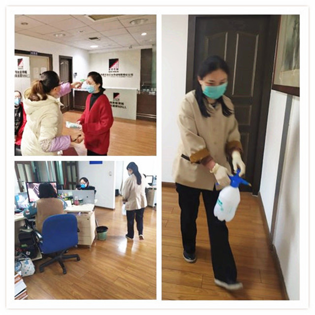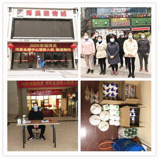 博美公司准备了消毒液、口罩、测温枪、酒精、洗手液等防控物资发放给员工,设立专门人员对所有进出公司人员进行体温检测及挂号。公司每天安排专人对办公区域进行消毒,要求每天员工健康报备,充分掌握公司员工返岗情况,做到了对所有人员状况的信息掌控,充分包管了公司情况的宁静和员工的身体健康。