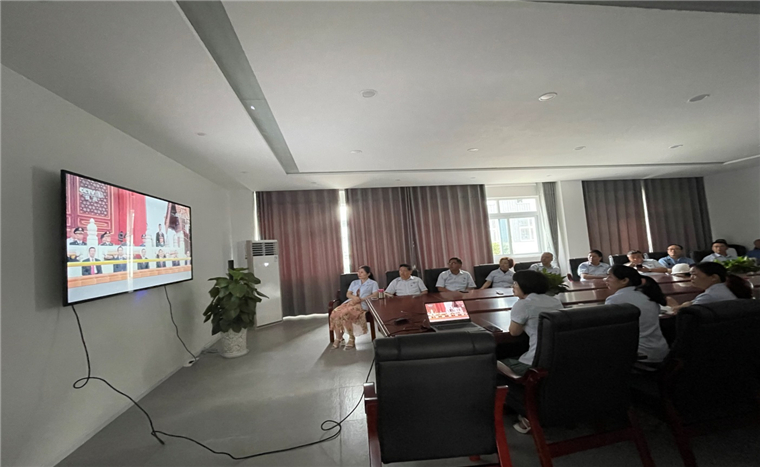 从激昂雄壮的《国际歌》,到催人奋进的《中华人民共和国国歌》,歌声响起,全体与会人员起立行注目礼,在庄严的国歌声中,收看“庆祝中国共产党建立100周年大会”的序幕正式拉开,激昂奋进的气氛浸染着整个会场。100年来,从艰苦卓绝的革命岁月,到热火朝天的建设年代,到昌盛生长的革新时期,中国共产党一路走来,始终与人民心连心、同呼吸、共命运,始终把为人民谋幸福、为民族谋生长作为矢志不渝的“初心”,领导中华民族不绝地前进。
