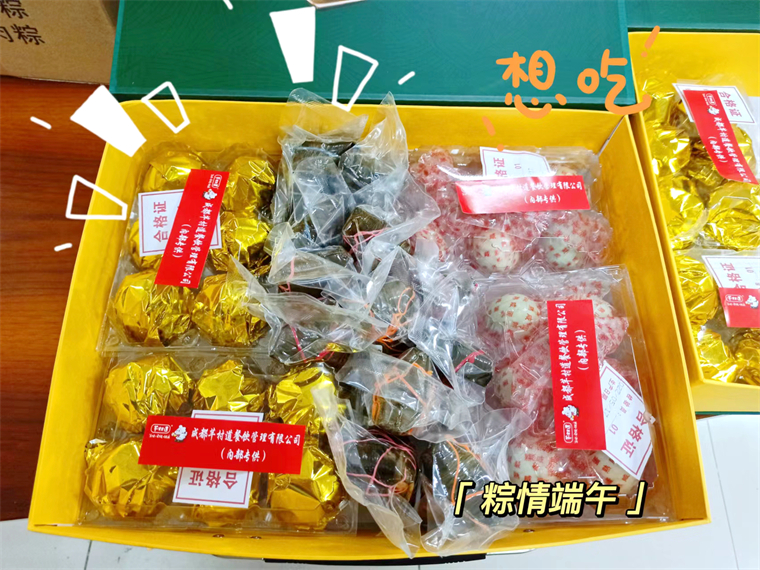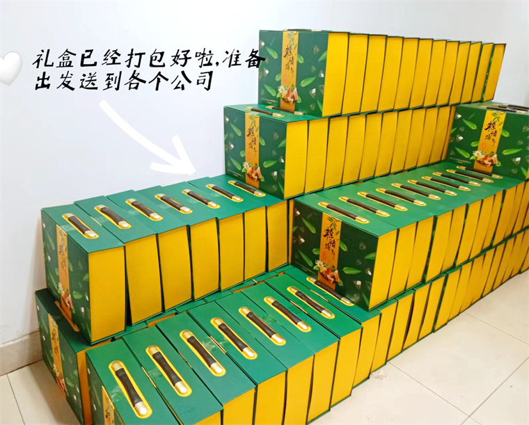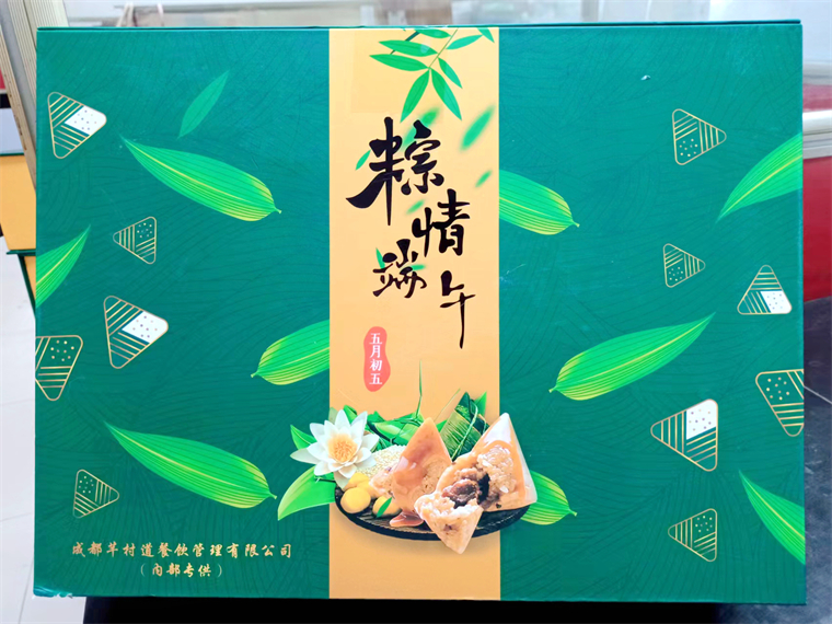 为了能给各人带来一份纷歧样的端午礼盒,公司领导层亲自前往包装制作厂订制包装盒,从挑选制作包装盒的质料,到颜色配比,再到封面图案,都是经过精挑细选。包装盒呈方形,颜色主要以绿色和黄色为主,封面印有“粽情端午”四字,用以粽叶遮盖,具有浓厚的端午色彩。
