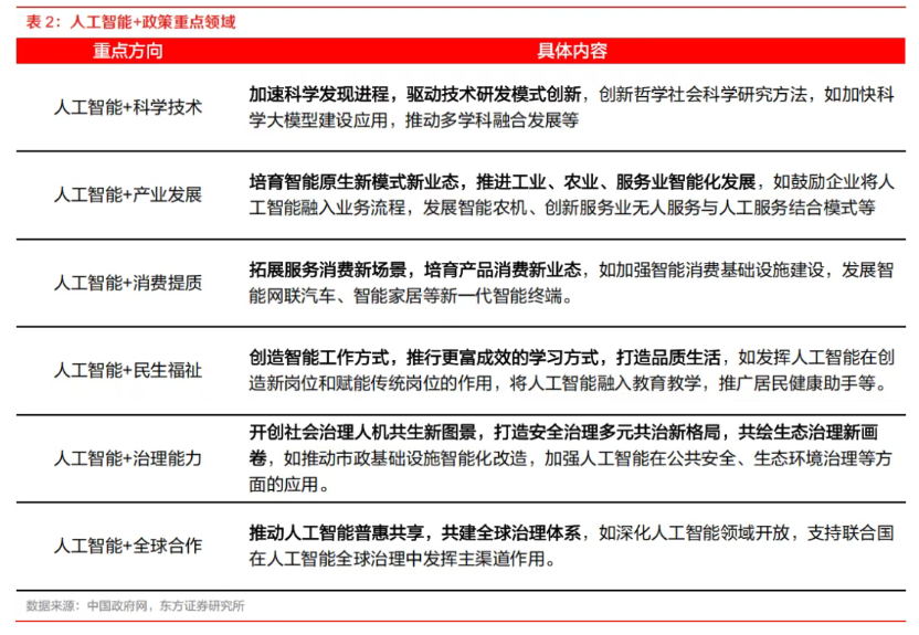 ƾ¾ÝÎļþ£¬¡°È˹¤ÖÇÄÜ+¡±¾Û½¹ÓÚÁù´óÐж¯£¬¼´AI+¿ÆÑ§¼¼Êõ¡¢+¹¤ÒµÉú³¤¡¢+Ïû·ÑÌáÖÊ¡¢+ÃñÉú¸£ìí¡¢+ÖÎÀíÄÜÁ¦¡¢+È«ÇòÏàÖú£¬ë¢»³ö´ó¹æÄ£Ó¦ÓõÄ·Ïßͼ¡£