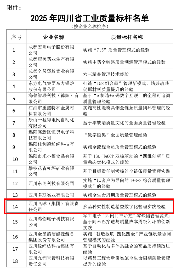 本网讯(黄志慧报道)日前,在成都金牛宾馆召开的2025年四川省企业文化与品牌建设立异生长大会上,四川飞球(集团)有限责任公司(以下简称“四川飞球”)荣获“四川省工业质量标杆”称呼。这一荣誉通过对四川飞球在“多品质柔性制造精益数字化治理”方面的标杆性评价,彰显其在阀门制造领域的连续深耕、追求卓越之企业品质。