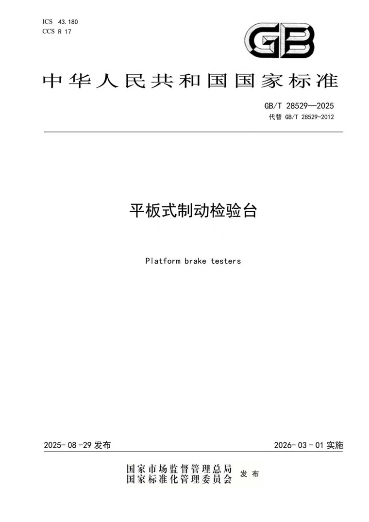 ±ê×¼»¯½¨ÉèÊdzɶ¼³É±£Ï°ëÄêµÄÖØµãÍÆ½øÊÂÇé¡£Óɹ«Ë¾×÷ΪµÚÒ»Æð²Ýµ¥Î»Ö÷µ¼ÐÞ¶©µÄ¹ú¼Ò±ê×¼¡¶Æ½°åÊ½ÖÆ¶¯¼ìÑę́¡·£¨GB/T 28529¡ª2025£©£¬ÒÑÓÚ½ñÄê8ÔÂ29ÈÕÕýʽÐû²¼£¬²¢½«ÓÚ2026Äê3ÔÂ1ÈÕÆðʵʩ¡£¸Ã±ê×¼Õë¶Ôƽ°åÊ½ÖÆ¶¯¼ìÑę́µÄ¼¼ÊõÒªÇó¡¢¼ìÑéÒªÁì¡¢¼ìÑ鹿ÔòµÈÒªº¦ÄÚÈݽøÐÐÁËϵͳ¹æ·¶£¬ÆäÁ¢ÒìÌá³öµÄƽ°åÊ½ÖÆ¶¯¼ìÑę́µÄÊý¾ÝÊÕÂÞÏìӦʱ¼ä¡¢Í¬²½ÐÔ³µËÙ¼à²â¡¢Õû³µÖƶ¯ÂÊÖØ¸´ÐÔÒªÇóÒÔ¼°ÊÔÑéÒªÁì¾ùµÖ´ïÁ˹ú¼ÊÏȽøË®Æ½¡£´ËÏî±ê×¼µÄÐû²¼Óëʵʩ£¬½«½øÒ»²½Í³Ò»ÐÐÒµÄÚÆ½°åÊ½ÖÆ¶¯¼ìÑę́µÄÉú²úÓë¼ì²â±ê×¼£¬ÎªÃÅ·½»Í¨Äþ¾²ÌṩԽ·¢¿ÆÑ§¡¢¿É¿¿µÄ¼¼Êõ°ü¹Ü¡£
