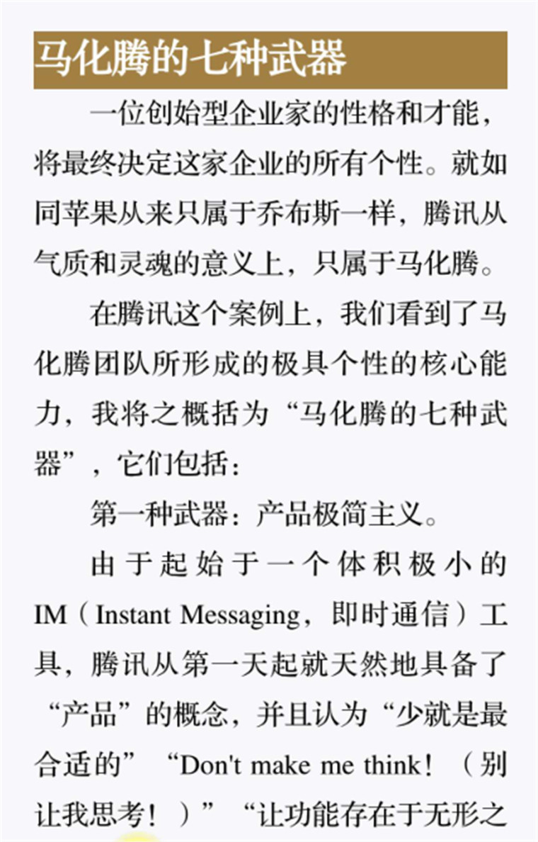 深读之后发明,其实全书真正的焦点在于透过腾讯可以视察到的中国企业逻辑,其中许多基于国情而降生的特殊能力,已往或受诟病或被追捧,而本书作者可以以越发客观的姿态对其进行剖析,这无疑是一种今世创颐魅者和企业家应当学习的姿态和能力。