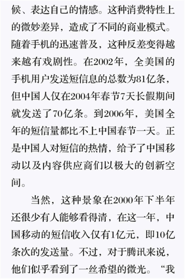 深读之后发明,其实全书真正的焦点在于透过腾讯可以视察到的中国企业逻辑,其中许多基于国情而降生的特殊能力,已往或受诟病或被追捧,而本书作者可以以越发客观的姿态对其进行剖析,这无疑是一种今世创颐魅者和企业家应当学习的姿态和能力。