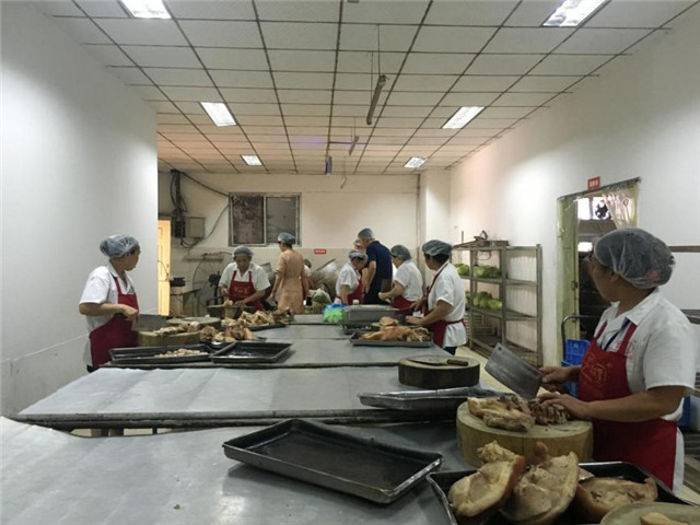 集体用餐配送单位是指凭据集体效劳工具订购要求,集中加工、分送食品,但不提供就餐场合,并具备一定标准化、专业化、集中化、工业化等特征的提供者。成都会食品药品监督治理局食品餐饮监管处副处长李所长介绍:“集体用餐配送的消费群体相对集中、用餐人数较多、食品分装运输要求高,食品宁静危害大,尤其是为学校学生供餐的企业,一旦爆发问题,极易造成群体性食品宁静事件。”所以关于现在目前的集体用餐配送许可证的审核、延续上都是抵达了前所未有的严格。针关于食药局第一次来看园地提出的意见在结合办证要求上的部分硬性划定,芊村道全体员工在各级领导的领导下在内对生产车间、中央厨房、分派车间、库房、办公区域等进行了大批量革新。在外对食品原质料的采购、成食品检验检测关、制品运输配送关等要害危害控制点做出了一一的整改提升。